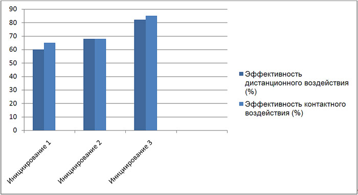 Табл 3.2 Сравнение эффективности контактного и дистанционного применения. Прим.: в связи с округлениями сумма может быть не равна 100%.
